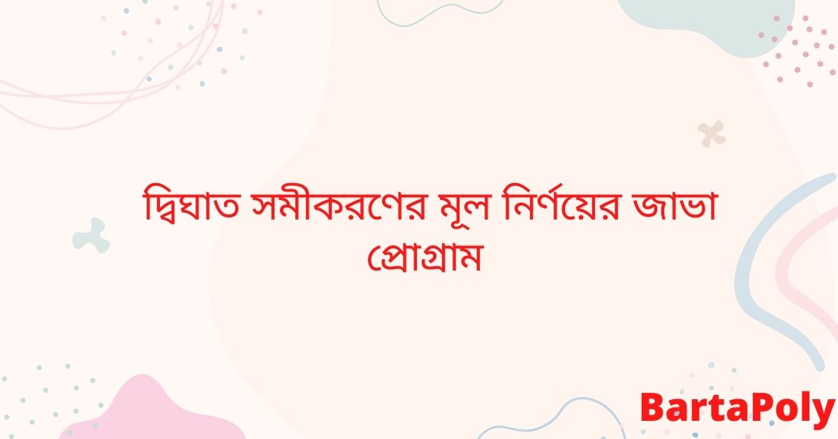 দ্বিঘাত সমীকরণের মূল নির্ণয়ের জাভা প্রোগ্রাম (দ্বিঘাত সমীকরণের মূল নির্ণয়)